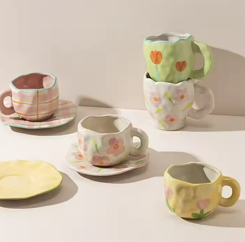 Handgemachte künstlerische Keramik Trink geschirr benutzer definierte Kaffeetasse und Tee tasse Großhandel handgemalte Blumen Design